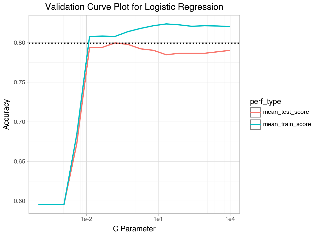 These models have very similar estimated generalization performance, but the logistic regression is slightly better. Let’s go ahead and move forward with the logistic regression model. Because the performance of the two models is so similar you may see a different result if you re-run this code.