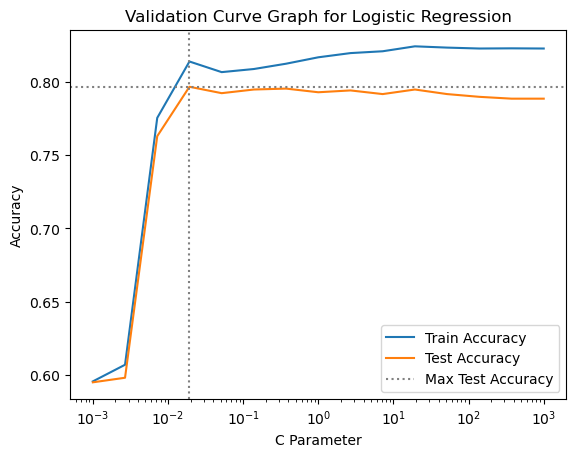 plt.legend(["Train Accuracy", "Test Accuracy", "Max Test Accuracy"],